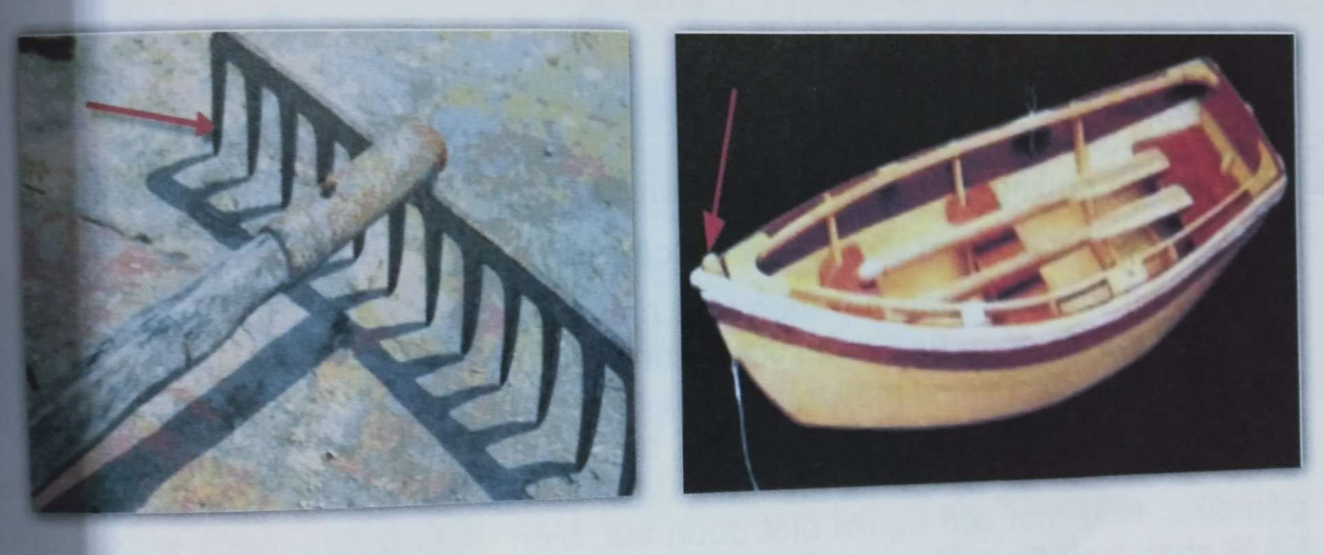 Nêu tên bộ phận được chỉ mũi tên của cái cào và chiếc thuyền dưới đây: