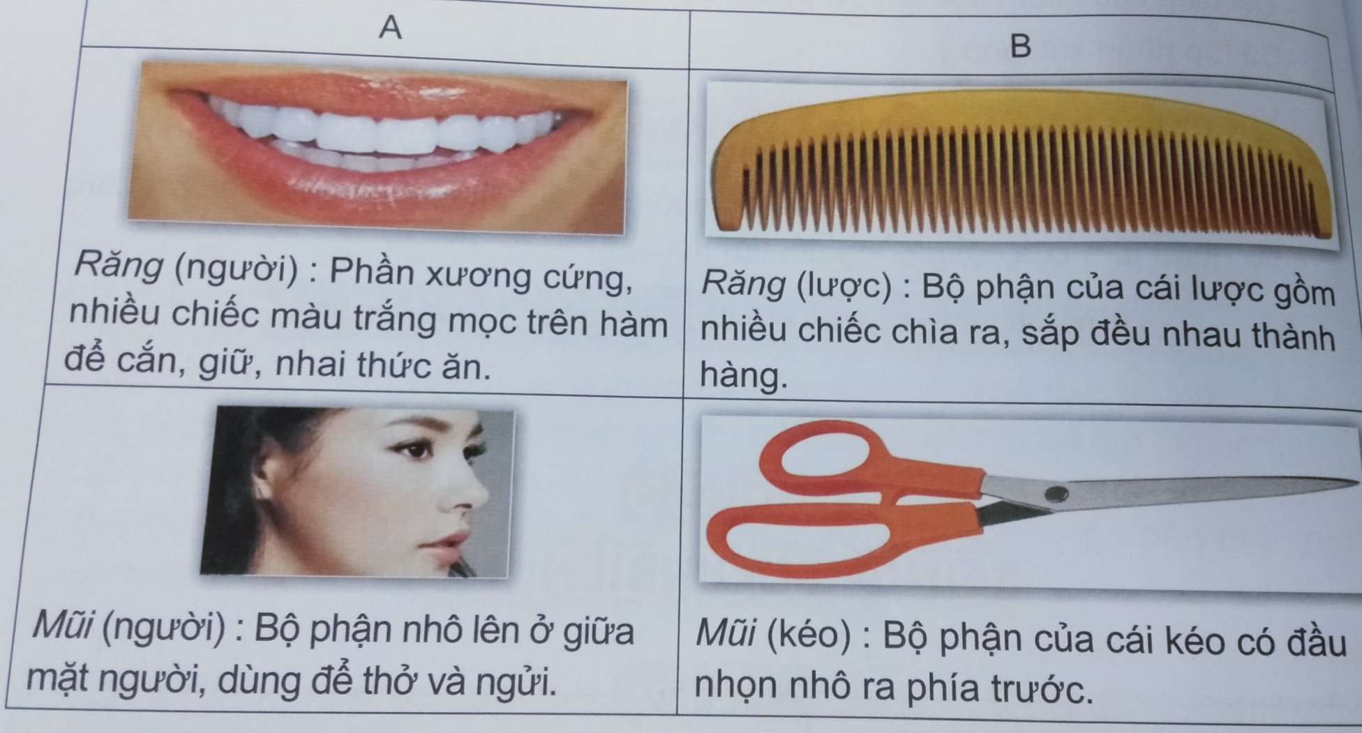 b) So sánh nghĩa của các từ răng, mũi trong các trường hợp trên để hiểu thế nào là từ nhiều nghĩa.