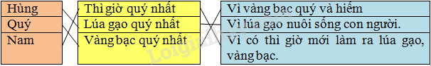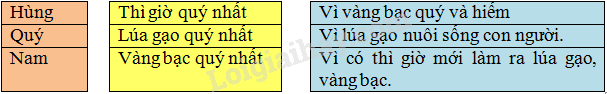 Hùng nói: "Theo tớ, quý nhất là lúa gạo. Các cậu có thấy ai không ăn mà sống được không?"