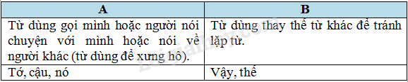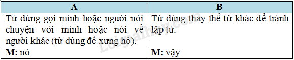 2) Chọn từ in đậm xếp vào mỗi cột A hoặc B trong bảng ở phiếu học tập: