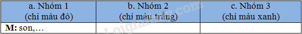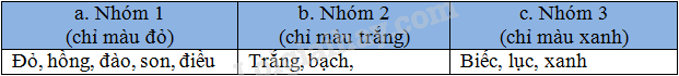 a) Nhóm 1 (đỏ): đỏ, hồng, điều, đào