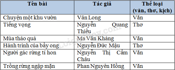 Lập bảng thống kê các bài tập đọc đã học trong chủ điểm Giữ lấy màu xanh (từ bài 11A đến bài 13C) theo mẫu sau: