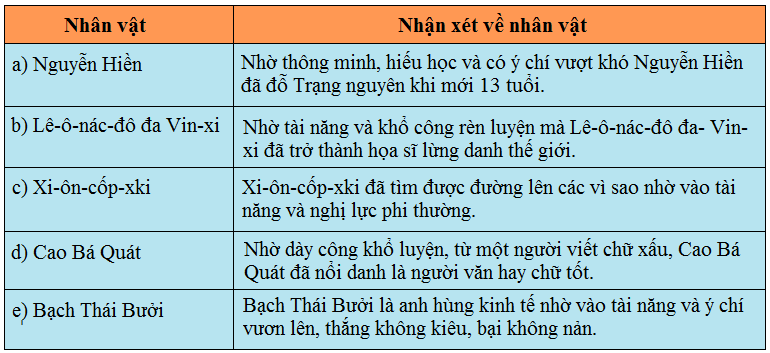 Kể những điều em biết về các nhân vật có chí qua các bài tập đọc từ bài 11A đến bài 13C.