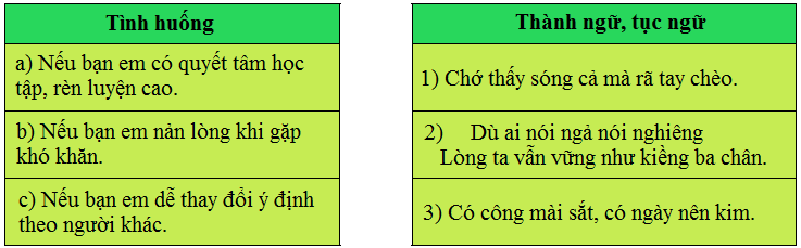 Chọn thành ngữ, tục ngữ phù hợp với những tình huống để khuyến khích hoặc khuyên nhủ bạn.