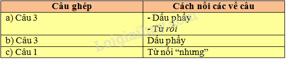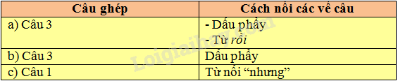 Tìm các câu ghép có trong ba đoạn văn sau và ghi vào bảng nhóm theo mẫu: