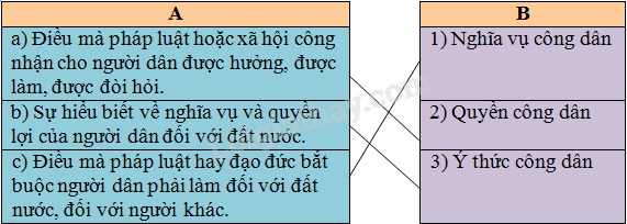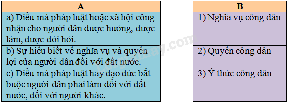 Chọn nghĩa ở cột A thích hợp với mỗi cụm từ ở cột B