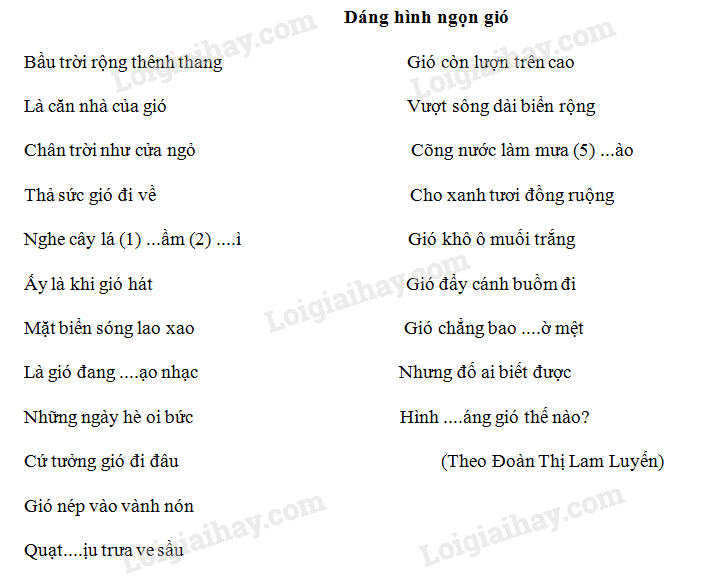 a. (1) rầm (2) rì, (3) dạo nhạc, (4) dịu, (5) rào, (6) giờ, (7) dáng