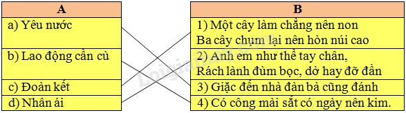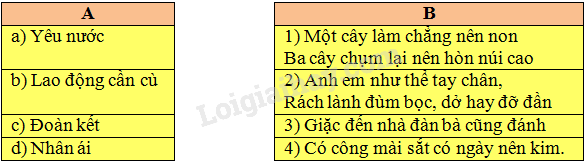 a) Chọn câu ca dao/tục ngữ ở cột B nêu được truyền thống quý báu của dân tộc ta ở cột A