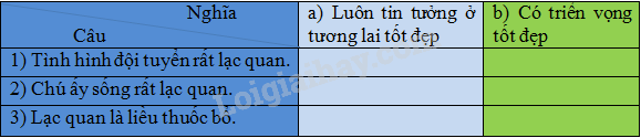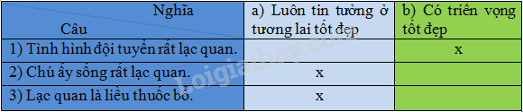 Trong mỗi câu sau, từ lạc quan được dùng với nghĩa a hay nghĩa b?