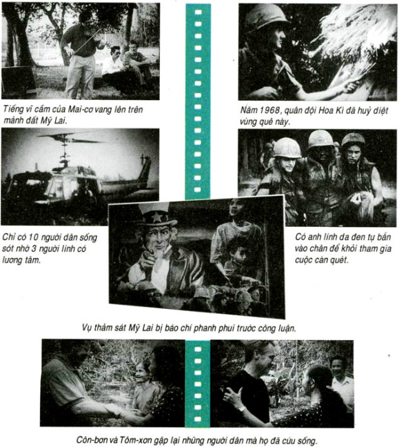 - Ảnh 6 và 7: Tôm-xơn và Cô-bơn đã trở lại Việt Nam sau 30 năm xảy ra vụ thảm sát. Hai người xúc động khi gặp lại những người dân đã được họ cứu sống. An-đrê-ốt-la vắng mặt trong cuộc gặp gỡ này bởi vì anh đã chết trận sau vụ Mĩ Lai 3 tuần.