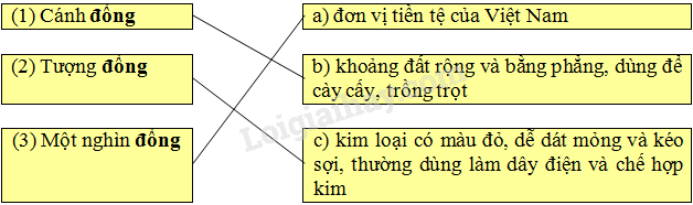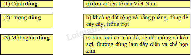 1) Nối ô có từ đồng âm được in đậm (ở ô chữ bên trái) với nghĩa thích hợp (ở ô chữ bên phải)