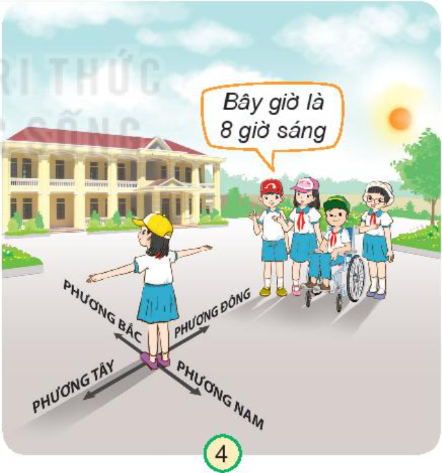 - Bước 1: Quan sát để xác định phương Mặt Trời mọc vào buổi sáng, phương Mặt trời lặn vào buổi chiều.