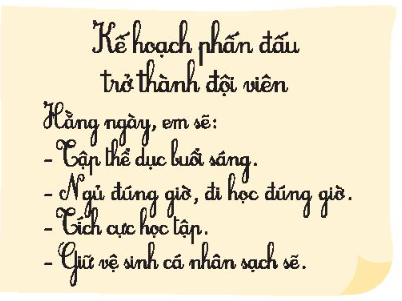 - Dự kiến các việc em cần làm để rèn luyện, phấn đấu trở thành đội viên.