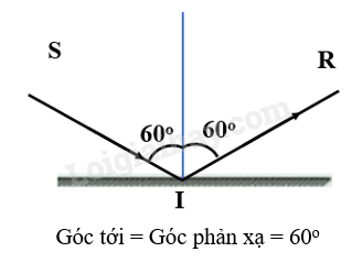 Câu 1: Một gương phẳng đặt trên mặt bàn nằm ngang, chiếu tia tới SI tới gương. Vẽ tia phản xạ IR khi góc tới bằng 0 o , 45 o , 60 o . |