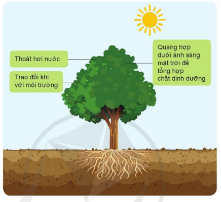 Dựa vào hình dưới đây, em hãy nêu chức năng của lá cây.