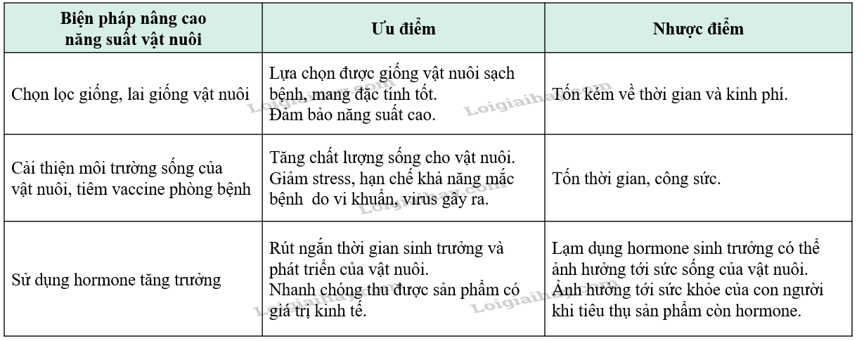 VD 2: Tìm hiểu một số biện pháp giúp nâng cao năng suất trong chăn nuôi ở địa phương em. Theo em, các biện pháp đó có ưu, nhược điểm gì? |