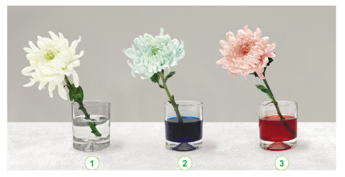 Tiến hành: Cắm mỗi bông hoa vào một cốc nước đã chuẩn bị. Sau khoảng 3 giờ, màu sắc các bông hoa thay đổi như thế nào? Vì sao?