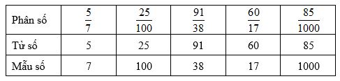 b) Tử số là số tự nhiên viết trên gạch ngang. Mẫu số là số tự nhiên khác 0 viết dưới gạch ngang.