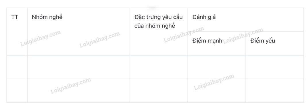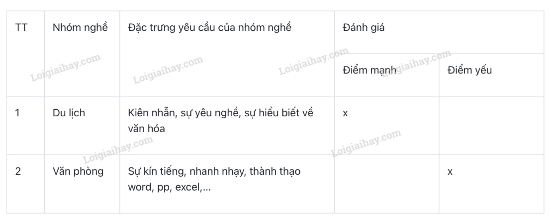 Đánh giá điểm mạnh, điểm yếu của bản thân đối với từng nhóm nghề