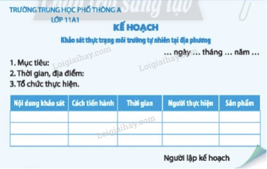 HS lên kế hoạch khảo sát theo gợi ý