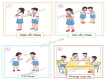 Nhận diện vấn đề thường xảy ra trong quan hệ bạn bè. Thảo luận về những vấn đề thường xảy ra trong quan hệ bạn bè được thể hiện qua mỗi bức tranh dưới đây: