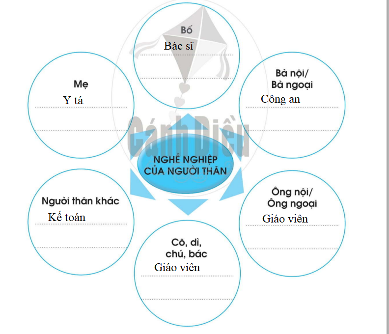 Hãy viết tên nghề nghiệp của người thân vào sơ đồ dưới đây: