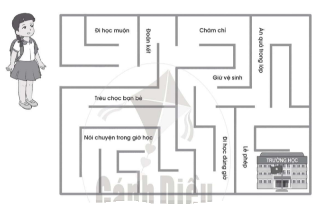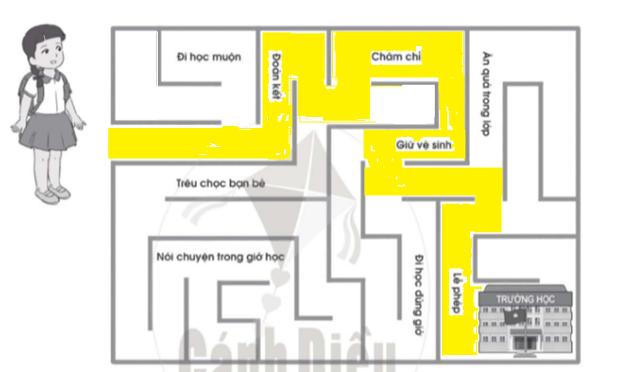 Hãy giúp bạn Linh đi đến trường học bằng cách tô màu vào đường đi có những nội quy mà Linh cần phải thực hiện khi ở trường.