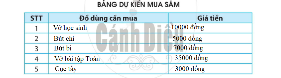 - Đầu tiên, em cần xác định được mình cần mua thêm những món đồ dùng học tập nào? Giá tiền của từng món đồ là bao nhiêu?