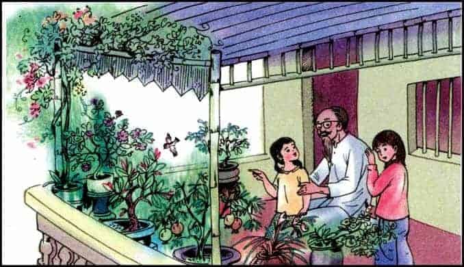 1) Bé Thu thích ra ban công để ngồi với ông nội, nghe ông rủ rỉ giảng về từng loài cây.