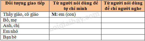 - Em tìm từ để tự chỉ mình và từ dùng để chỉ người nghe.