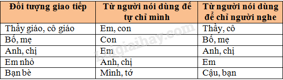 - Chú ý chọn từ xưng hô phù hợp với thứ bậc, giới tính, tuổi tác,..