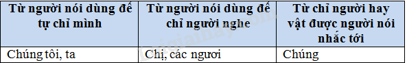 1. Đại từ xưng hô là từ được người nói dùng để tự chỉ mình hay chỉ người khác khi giao tiếp: tôi, chúng tôi; mày, chúng mày; nó, chúng nó,… 2. Bên cạnh các từ ngữ nói trên, người Việt Nam còn dùng nhiều danh từ chỉ người làm đại từ xưng hô để thể hiện rõ thứ bậc, tuổi tác, giới tính: ông, bà, anh, chị, em, cháu, thầy, bạn,… 3. Khi xưng hô, cần chọn từ cho lịch sự, thể hiện đúng mối quan hệ giữa mình với người nghe và người được nhắc tới. |