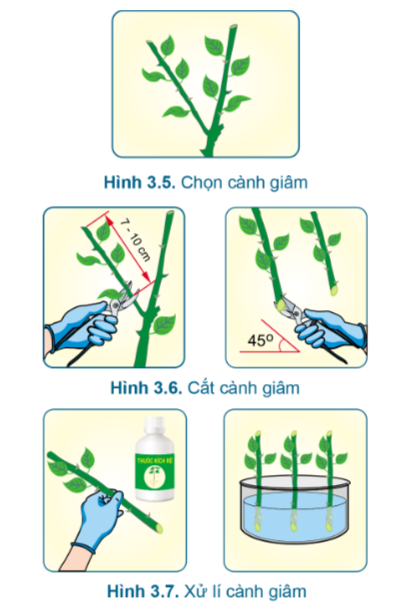 - Cành giâm: cành của các loại cây ăn quả, rau, hoa trong vườn trường hoặc gia đình như chanh, quýt, mơ, mận, …