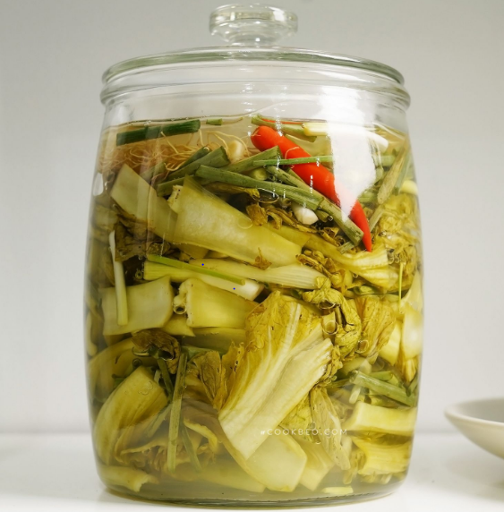 Lên men là phương pháp chế biến thực phẩm trong đó đường trong nguyên liệu chuyển thành acid hoặc cồn nhờ vi sinh vật. Ví dụ: muối chua rau củ, làm sữa chua, làm men chua, ủ rượu vang…
