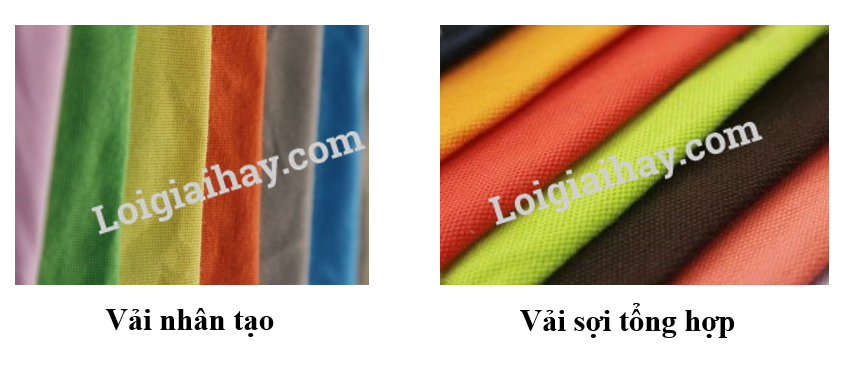 + Vải sợi tổng hợp: Nguyên liệu ban đầu để tổng hợp chúng là những hợp chất hóa học thu được từ than đá và dầu mỏ. Vải có độ bền cao, bề mặt vải bóng đẹp, nhiều màu sắc, không bị nhàu, giặt nhanh khô. Tuy nhiên, loại vải này có độ hút ẩm kém, ít thoáng khí, dễ gây kích ứng da. Khi đốt sợi vải, tro vón cục, bóp không tan.