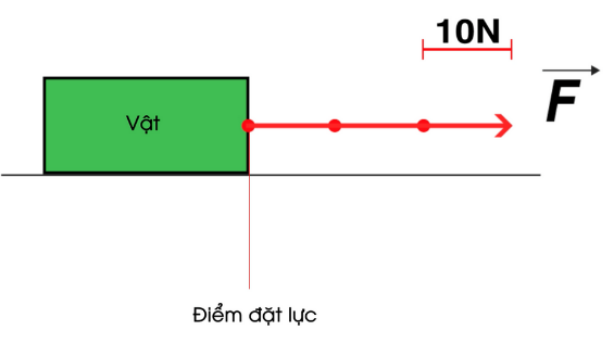 => Vật chịu tác dụng của lực theo phương nằm ngang, hướng từ trái sang phải, có độ lớn là 30 N.