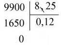c) Ví dụ 2: \(99 : 8,25 = \;?\)