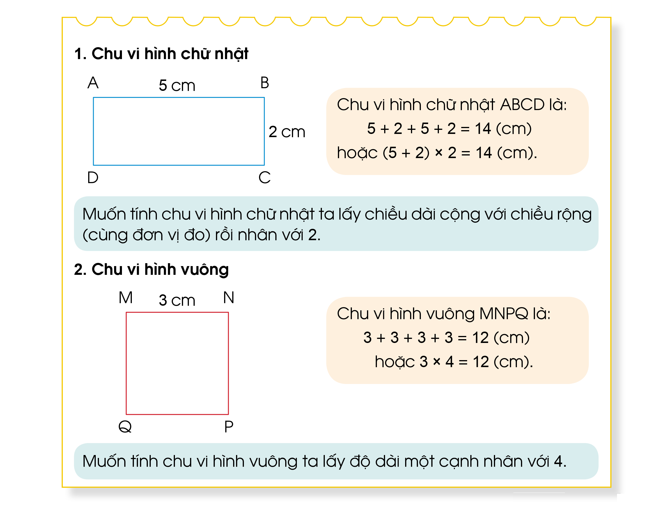 Lý thuyết: Chu vi hình chữ nhật, chu vi hình vuông - SGK Cánh diều