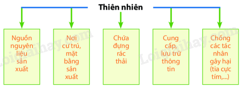- Thiên nhiên cho con người không gian sống, cung cấp các điều kiện cho hoạt động và sản xuất và là nơi chứa đựng chất phế thải của con người.