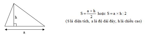 (\(S\) là diện tích, \(a\) là độ dài đáy, \(h\) là chiều cao)