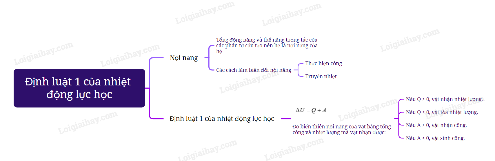 Sơ đồ tư duy về “Định luật 1 của nhiệt động lực học”