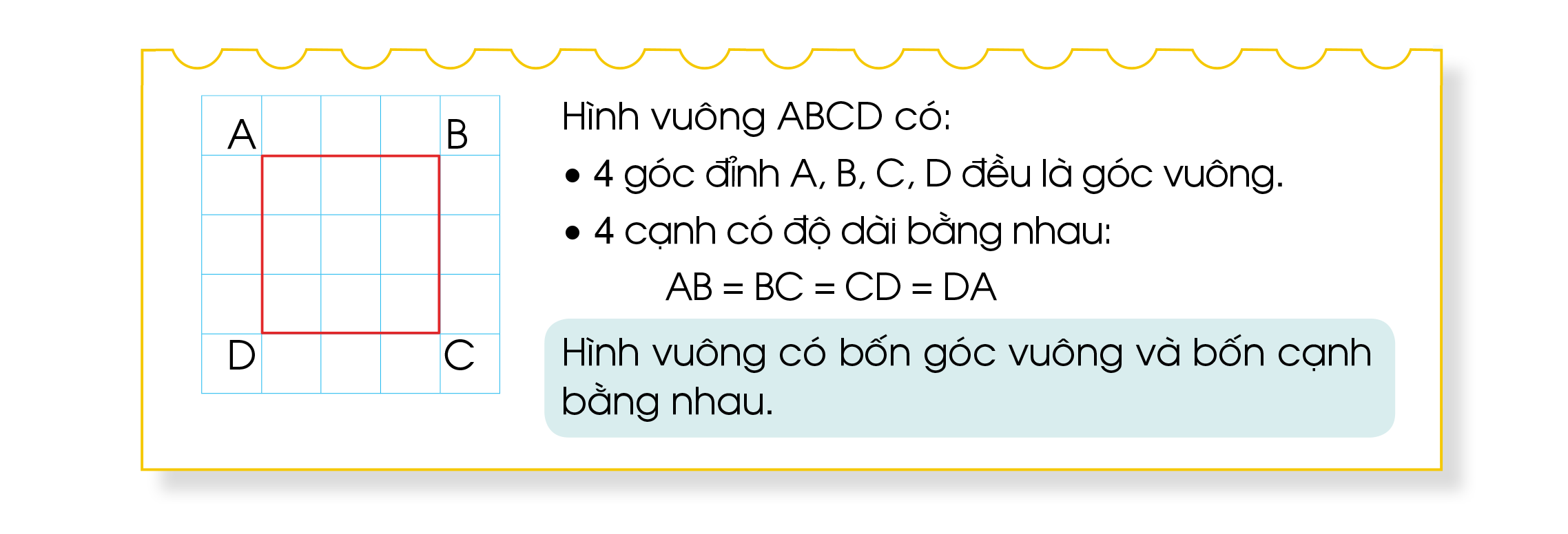 Hình vuông có bốn góc vuông và bốn cạnh bằng nhau