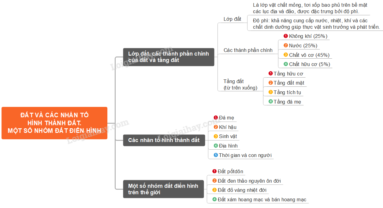 Sơ đồ tư duy lớp đất và các nhân tố hình thành đất. Một số nhóm đất điển hình