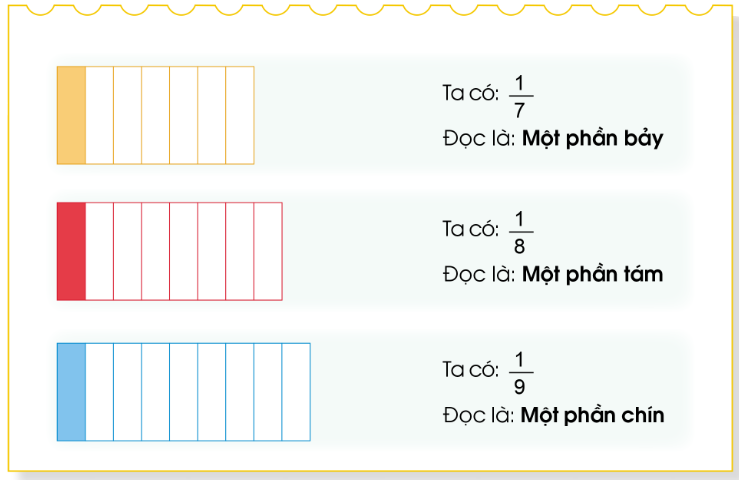 Lý thuyết: Một phần bảy. Một phần tám. Một phần chín - SGK Cánh diều