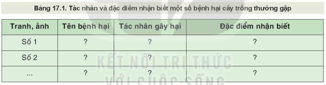 Bước 1: Từng nhóm học sinh nhận tranh, ảnh bệnh hại cây trồng hoặc mẫu bệnh hại từ giáo viên
