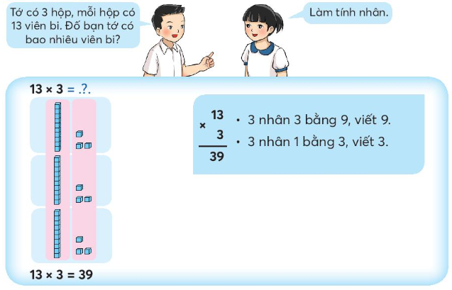 Tớ có 3 hộp, mỗi hộp có 13 viên bi. Đố bạn tớ có bao nhiêu viên bi?