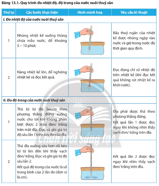 4.2 Quy trình thực hành đo nhiệt độ, độ trong của nước nuôi thuỷ sản