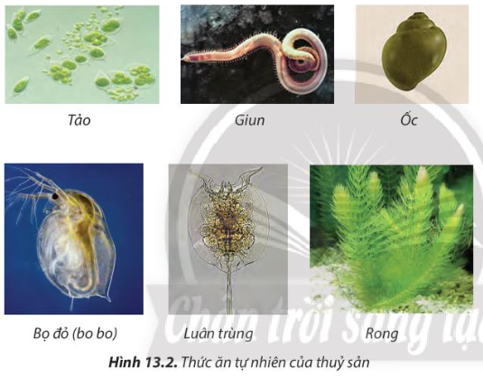 Khái niệm: thức ăn tự nhiên là thức ăn có sẵn trong ao, hồ, bao gồm: thực vật phù du (vi tảo, tảo); thực vật đáy (rong, rêu); động vật phù du (luân trùng, bọ đỏ); động vật đáy (giun, ốc, trùn chỉ)