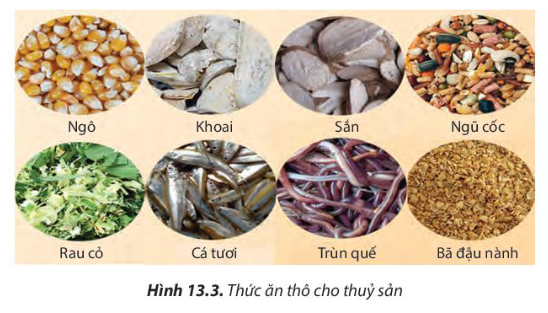 - Thức ăn thô là phụ phẩm nông nghiệp và công nghiệp; các nguyên liệu được xay nhỏ, phối trộn có bổ sung premix – vitamin và được nấu chín trước khi cho thuỷ sản nuôi ăn.