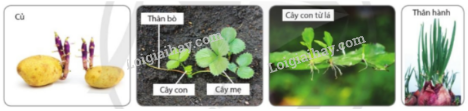 - Sinh sản vô tính là hình thức sinh sản mà cây con được tạo ra từ các bộ phận sinh dưỡng khác nhau của cây mẹ như củ, thân, rễ, lá,...